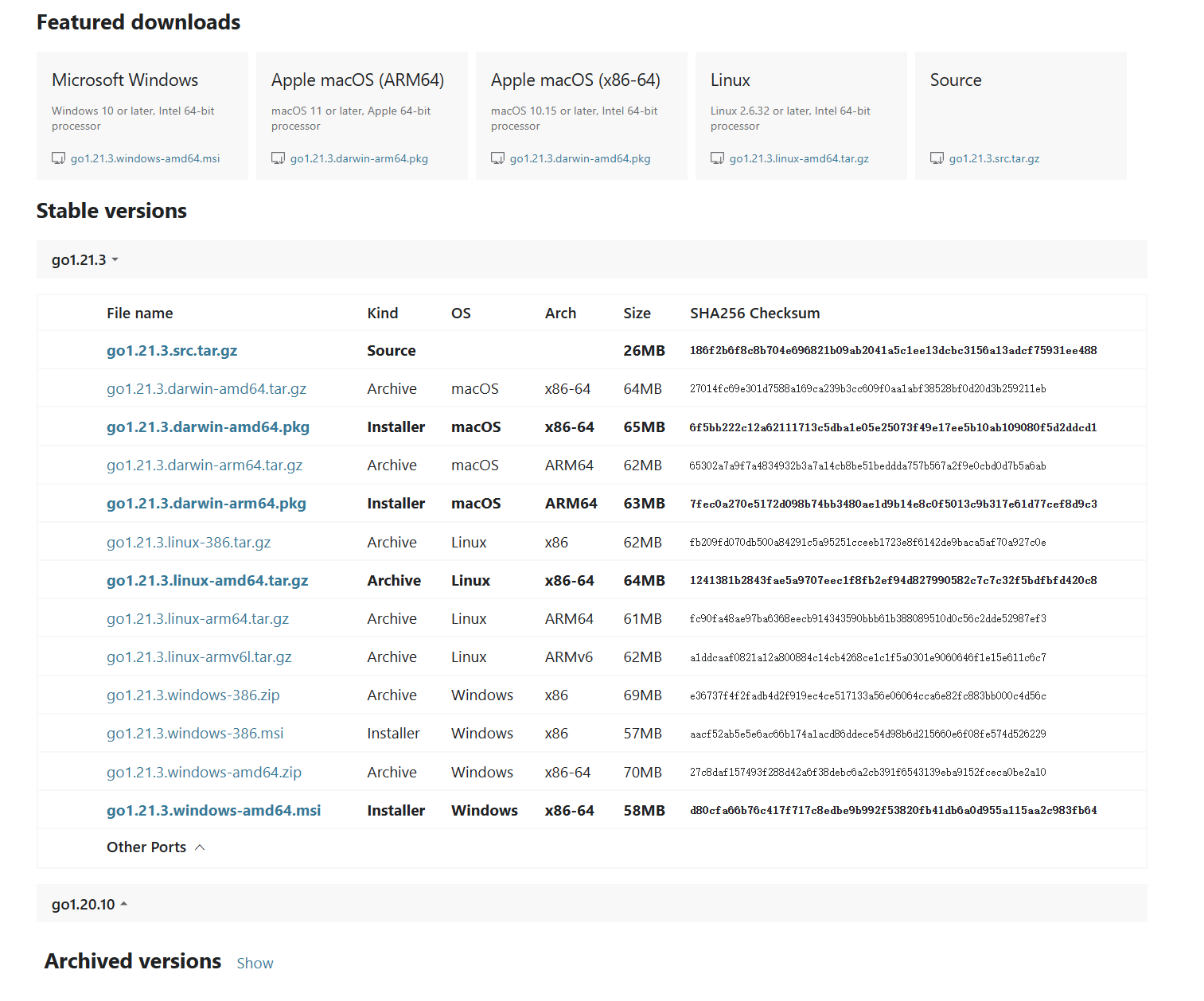 Go 语言下载:Downloads - The Go Programming Language